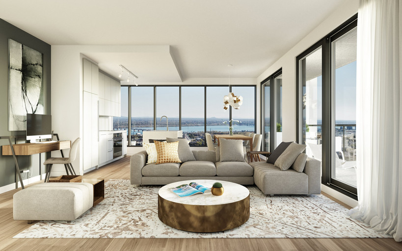 Experience rental living at its finest. In the heart of Montreal’s downtown, Le George establishes its impressive presence as home to trendsetters and tastemakers, to those seeking a metropolitan living experience unlike any other. With its distinctive architecture, celebrated location, executive workspaces and wellness centers, Le George is among the most desired apartment buildings in Montréal. Combining the harmony of stylish form and modern construction Le George was built and comprehensively designed with convenience in mind.Indulge on the 46th floor in the highest exclusive residential lounge in the city, overlooking the skyline with Mount Royal in the distance. Relax by the pool before enjoying a movie in our theatre. Take your fitness to new levels in our two state-of-the-art fitness centers featuring a cross-fit room and a fully equipped gym. Recover with restorative meditation in our yoga room featuring an authentic salt wall. It’s all been meticulously curated and delivered for the residents of Le George.
