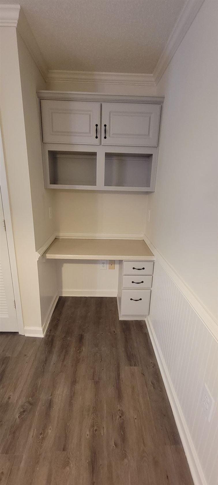 You will be able to cook and serve from the kitchen to living room with no problems thanks to your counter-bar. Plus tons of cabinet and counter space.