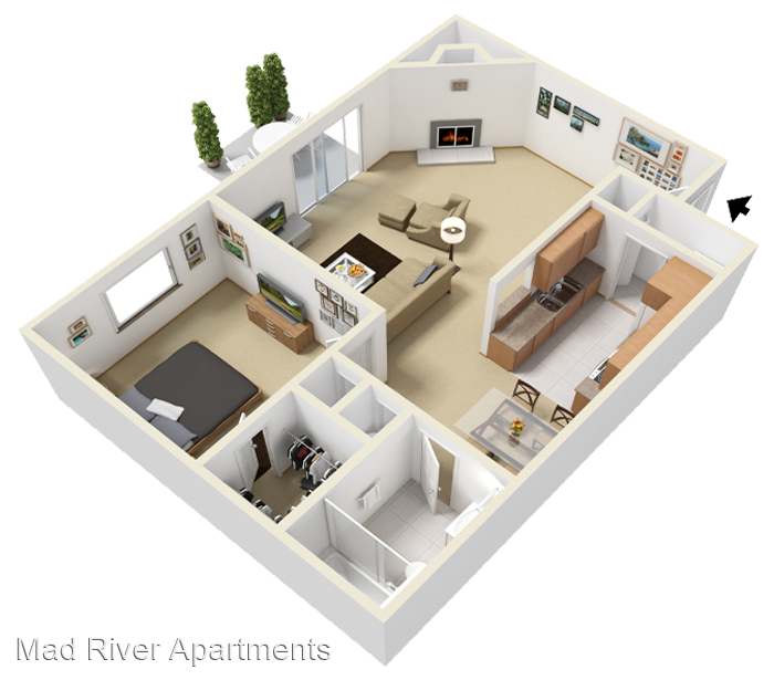 The Riverbend One - Spacious one bedroom unit with lots of natural light! You'll also enjoy a full-size washer & dryer and plenty of closet space. Vaulted ceilings are available in select units. Vaulted Ceilings* Walk-In Closets* Fireplaces* Washer/Dryer Cable Ready *In Select Units