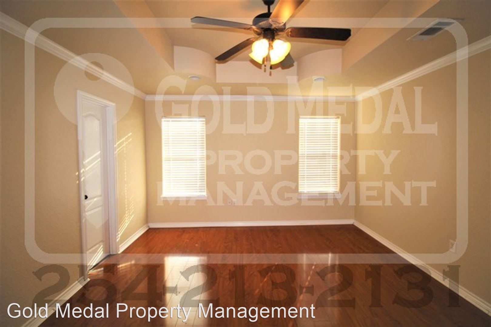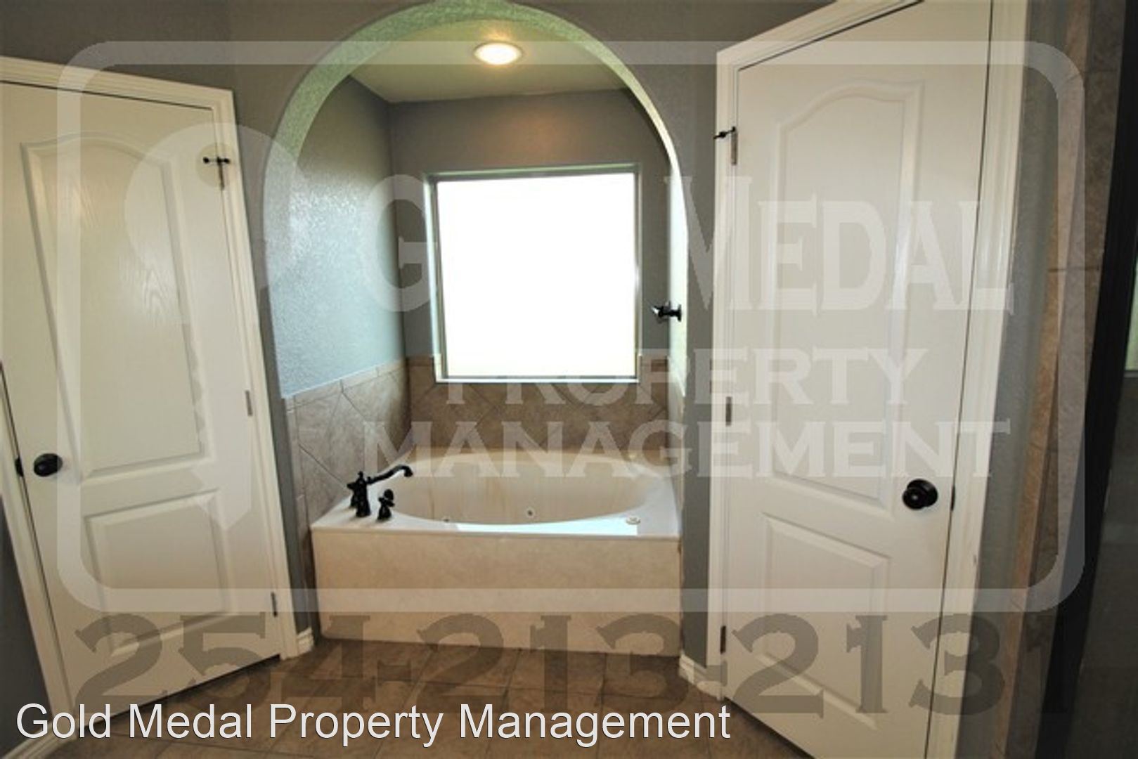 The master bedroom, laundry room, and garage are located on the opposite side of the home for added privacy. The master bedroom has laminate wood flooring which matches the living room, neutral beige tone paint, a tray ceiling with ceiling fan and recessed lighting, as well as a large en suite. The master bath includes a walk in shower with glass door, a garden jetted tub that has a stunning archway over it, a privacy toilet, double vanity, and two walk in closets with more than enough space. The laundry room holds the full washer and dryer connections and the door to the two car garage. The back door is in the dining room and leads to a patio and a privacy fenced in back yard with tons of space for entertaining guests.