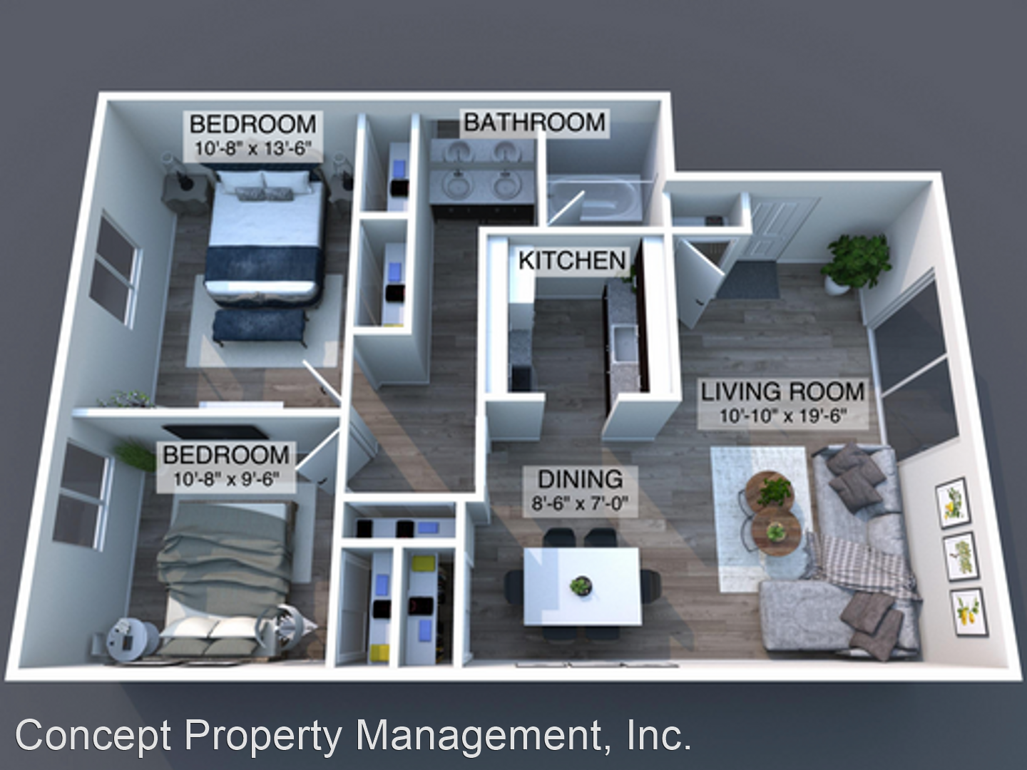 The open floor plan apartment boasts: